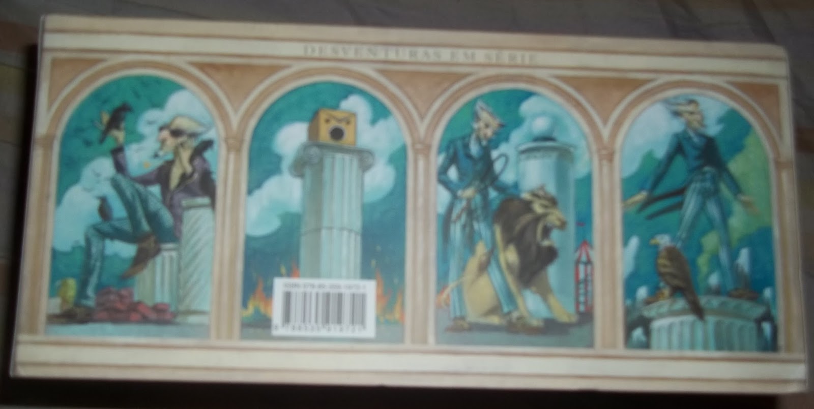 A capa de cada volume é bem simples, possui uma arte no meio tipo em uma moldura, e o fundo é amarelo. Nessa arte temos o titulo 'Desventuras Em Série' em todos os livros.